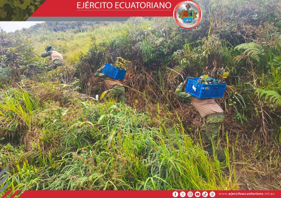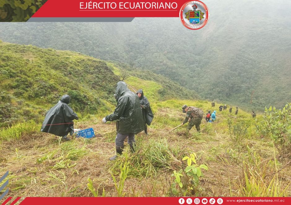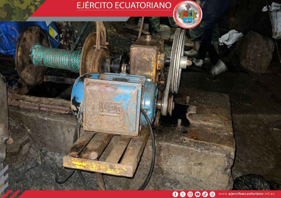 El Ejército Ecuatoriano realizó una operación militar contra la minería ilegal en el sector Quinshull de la parroquia El Chical, cantón Tulcán, donde se decomisó e...