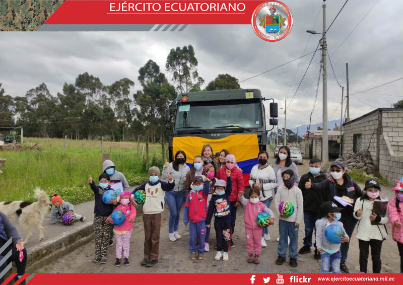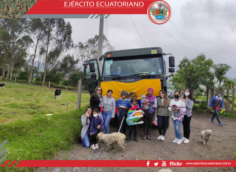 El Grupo de Artillería N.° 13 Mariscal Sucre realizó la donación de kits alimenticios a las personas de escasos recursos del sector del Chaupi en el cantón Mejía.