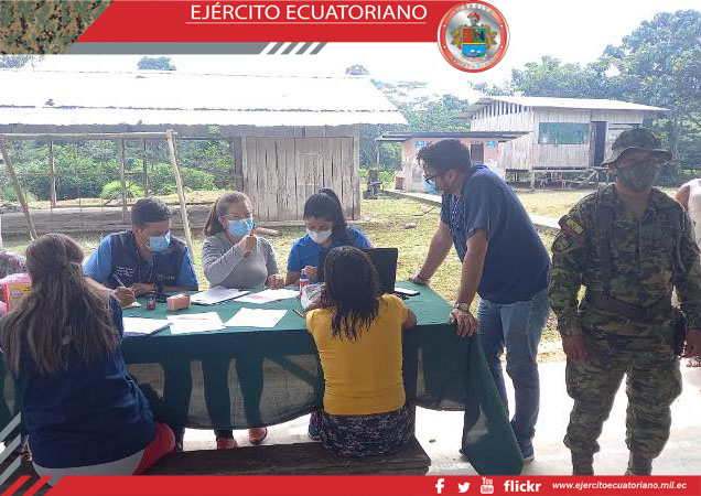 La Brigada de Selva N.⁰ 19 Napo, cumpliendo con todas las medidas de bioseguridad, brinda seguridad y apoyo al Ministerio de Salud Pública durante el proceso del Plan de...