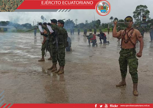 Cadetes de cuarto año de la sección de infantería de la Escuela Superior Militar Eloy Alfaro realizaron el tiro del arma antitanque C-90 y del lanzagranadas en el polígono de...