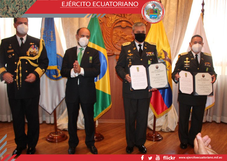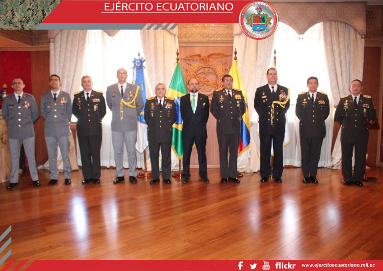 En el Salón Rojo del Comando General del Ejército Ecuatoriano se desarrolló el acto protocolar en el que el señor Pedro de Castro da Cuña E Menezes, ministro consejero de la...
