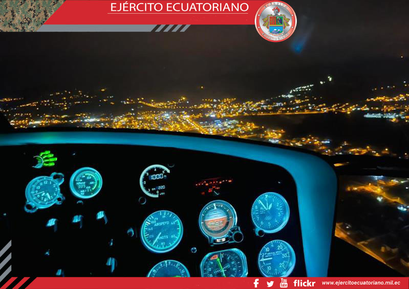 El Grupo de Aviación del Ejército N.° 43 Portoviejo realiza entrenamiento en vuelo visual nocturno, con el fin de mantener actualizadas a sus tripulaciones en este tipo de...