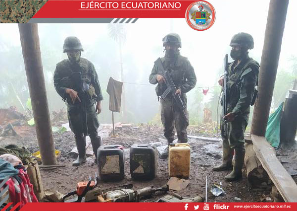 En el sector de la comunidad Pioculín, parroquia Puerto Napo, cantón Tena, efectivos del Batallón de Operaciones Especiales en Selva N.° 47 Iwias encontró a personas realizando...