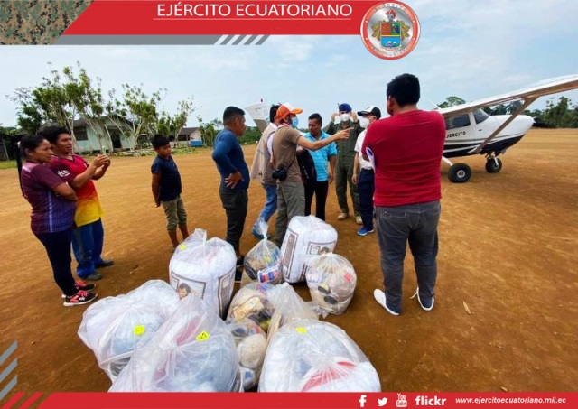 Tras las fuertes lluvias y vientos que afectó a la población de la comunidad de Tucupi, en el cantón Taisha, efectivos del Batallón de Selva N.° 50 Morona apoyaron al personal de...