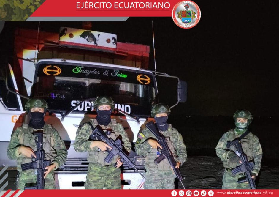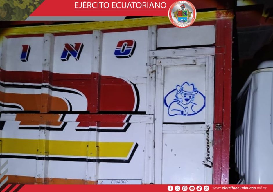 Efectivos del Ejército Ecuatoriano, durante la ejecución de operaciones militares de control y vigilancia en el cantón Arenillas, parroquia Chacras, decomisaron un camión que...