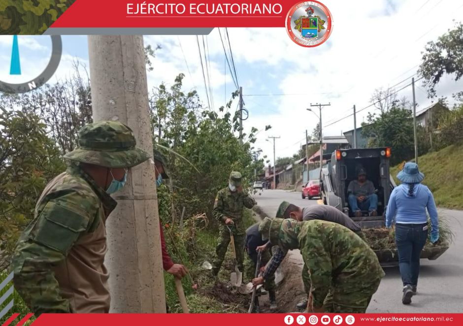 Personal de Ejército Ecuatoriano, en apoyo a la ciudadanía de la parroquia El Cambio en el cantón Paute, participó en la siembra de plantas nativas en varios sectores del lugar....