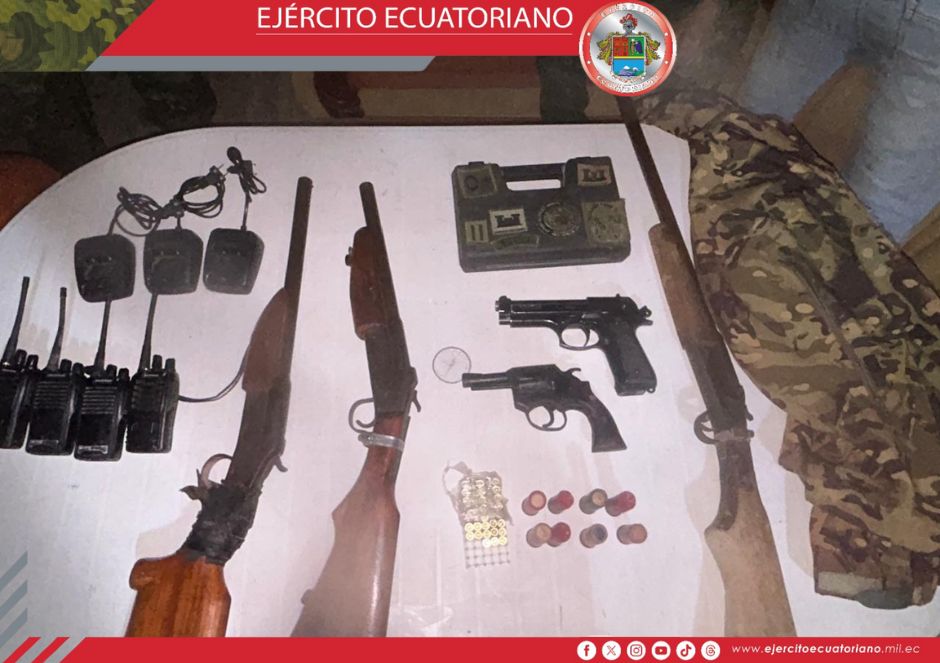 El Ejército Ecuatoriano, la noche del 17 de octubre, allanó una vivienda en San Eloy, cantón Rocafuerte, donde decomisaron varias armas de fuego, municiones 9mm, cargadores y...