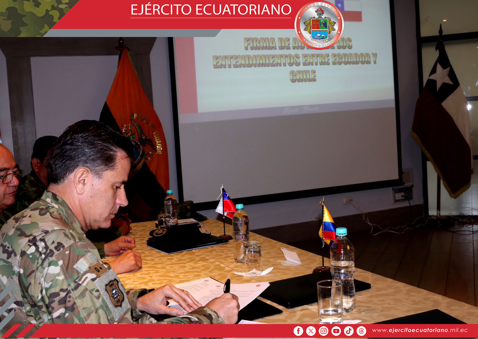 Finaliza la XII Conferencia Bilateral de Estados Mayores entre Ecuador y Chile, en el cual se firmaron 38 entendimientos sobre intercambio de conocimientos, entrenamiento e...