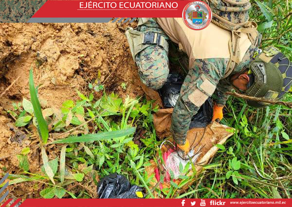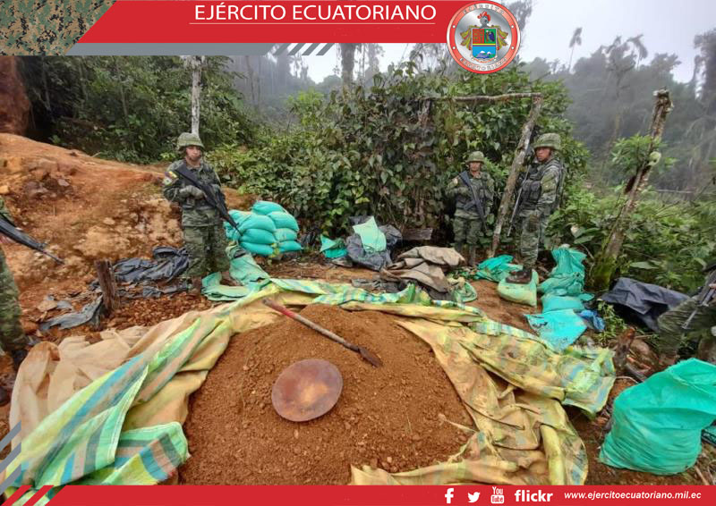 Personal del Batallón de Ingenieros N.º 67 Montúfar, en coordinación con Fiscalía de Santo Domingo, DGI, Policía Judicial, Criminalística, en presencia del fiscal del cantón...