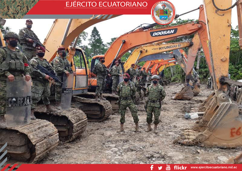 Fuerzas Armadas en apoyo a entidades del estado realizaron una operación militar en contra de la minería ilegal en el sector Yutzupino cantón Napo, logrando los siguientes...