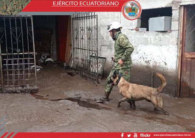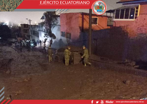 Personal del Ejército Ecuatoriano está participando en las actividades de búsqueda, rescate y limpieza en el sector de La Gasca en Quito, después del aluvión que afectó a este...
