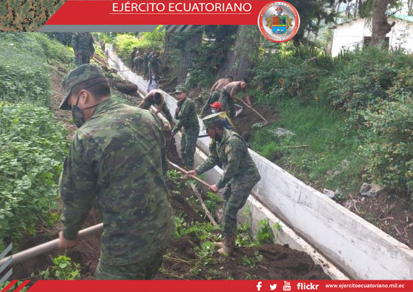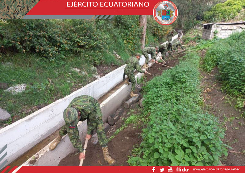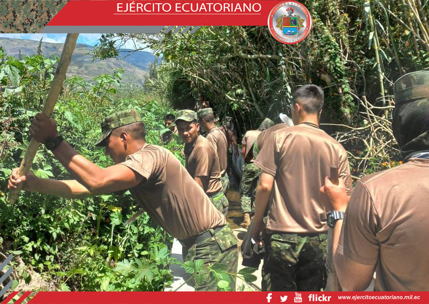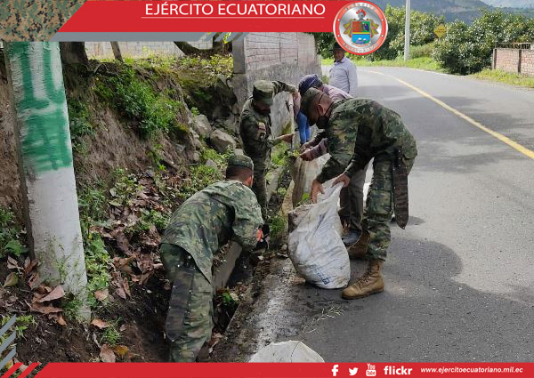 Personal de la Escuela de Formación de Soldados del Ejército Vencedores del Cenepa, en cumplimiento al Proyecto de Vinculación con la Sociedad, realizó trabajos de limpieza,...