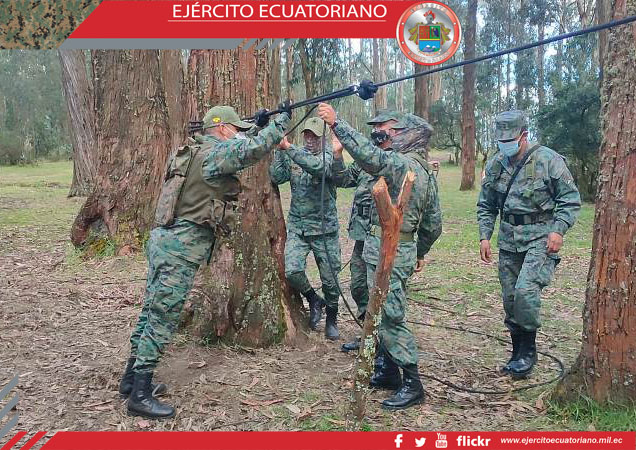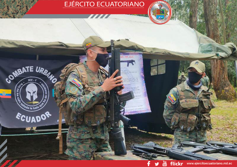 Instructores de la Compañía de Combate Urbano del Batallón de Infantería Motorizado N.° 38 Ambato, imparten instrucción de conocimiento del fusil HK 33E, antimotines, cuerdas y...