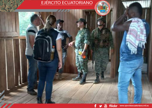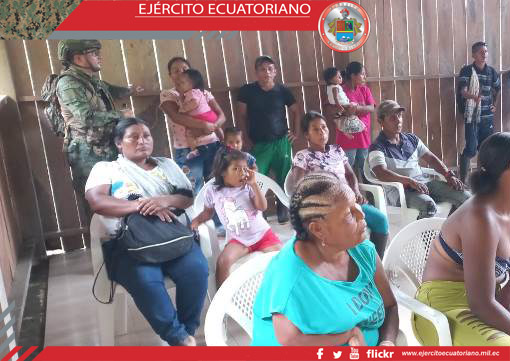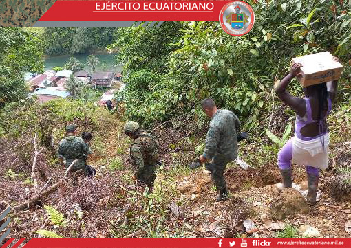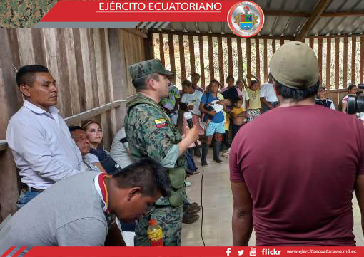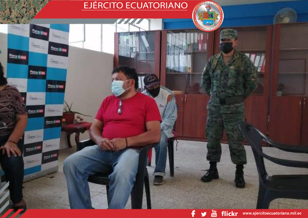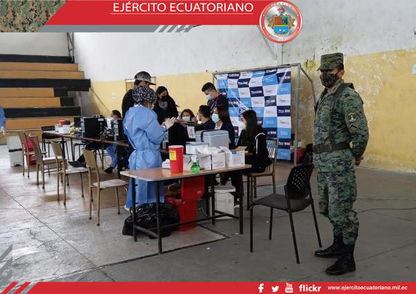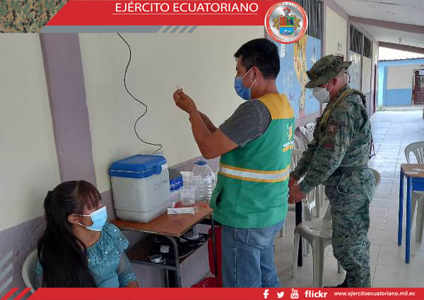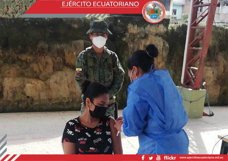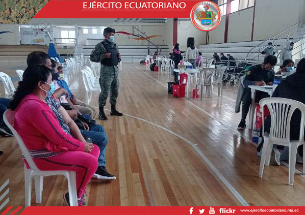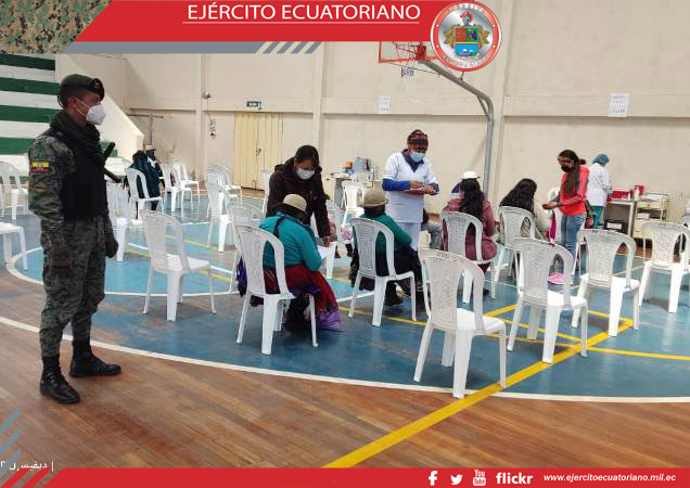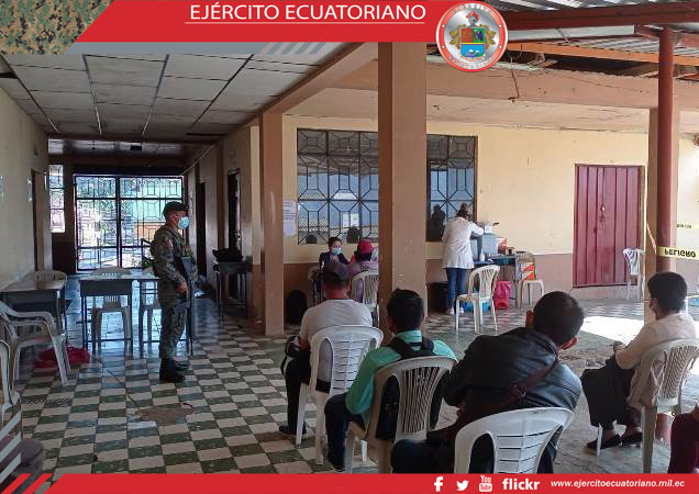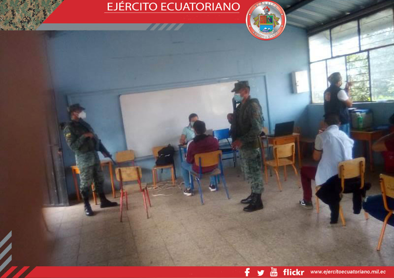 Efectivos del Batallón de Infantería N.° 19 Carchi, en apoyo a entidades del Estado, proporcionan la seguridad al personal del Ministerio de Salud Pública que se encuentra en la...