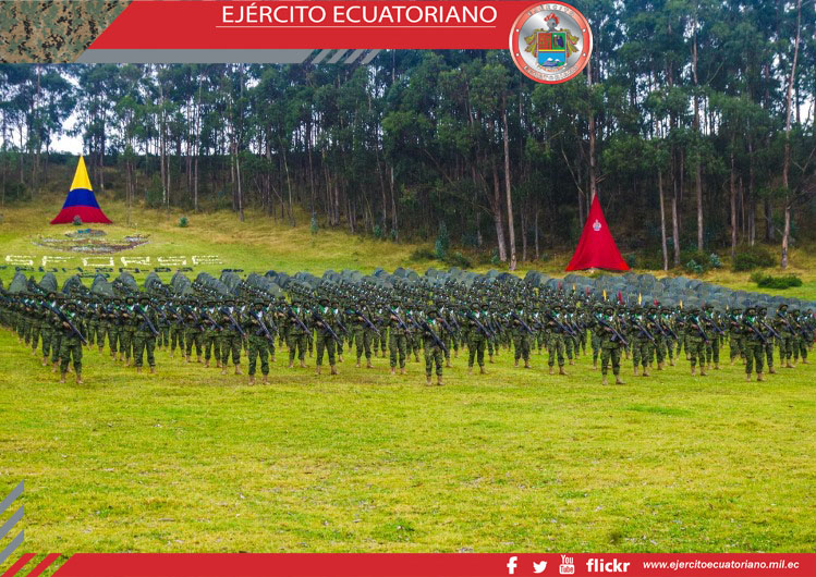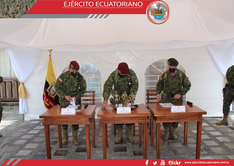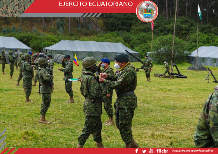 En la base de entrenamiento El Corazón, en la Brigada de Infantería N.° 13 Pichincha, se realizó la ceremonia militar de imposición de insignias de campaña de arma y servicios a...