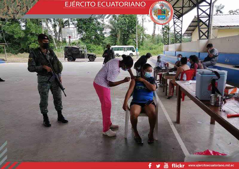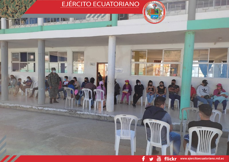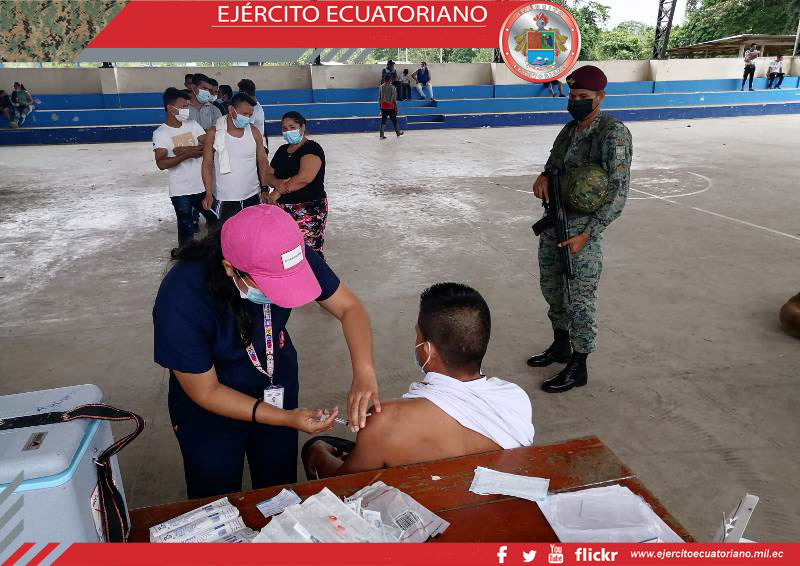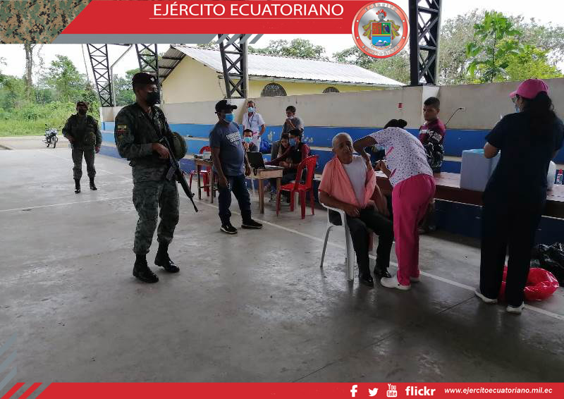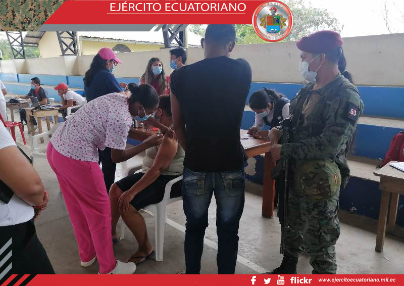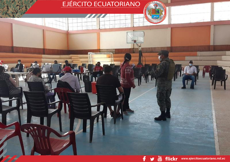 Personal militar perteneciente al Batallón de Infantería N.º 21 Macará continúa proporcionando seguridad en el proceso de inoculación contra el COVID-19 a los miembros del...