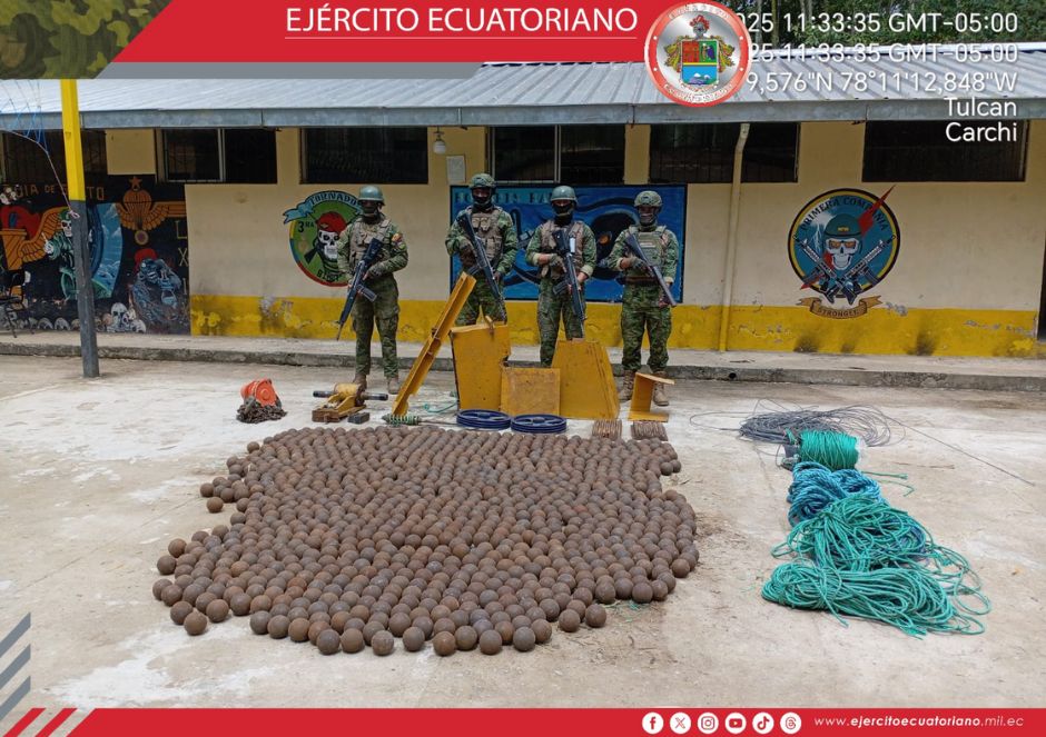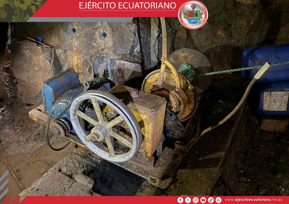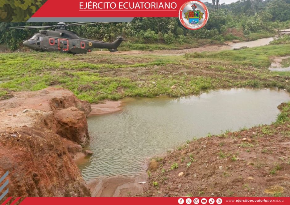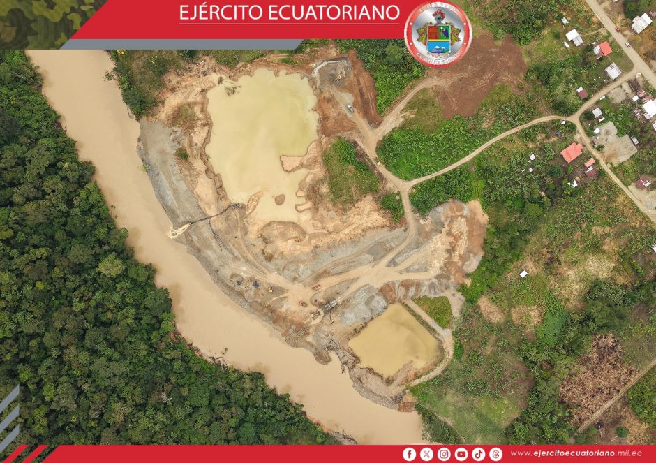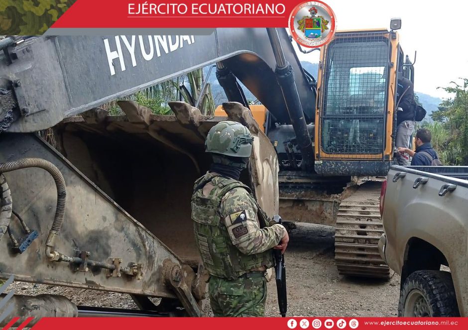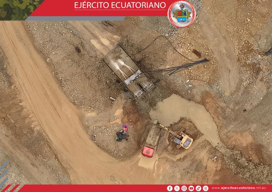 El Ejército Ecuatoriano realizó una operación militar contra la minería ilegal en el sector Quinshull de la parroquia El Chical, cantón Tulcán, donde se decomisó e...