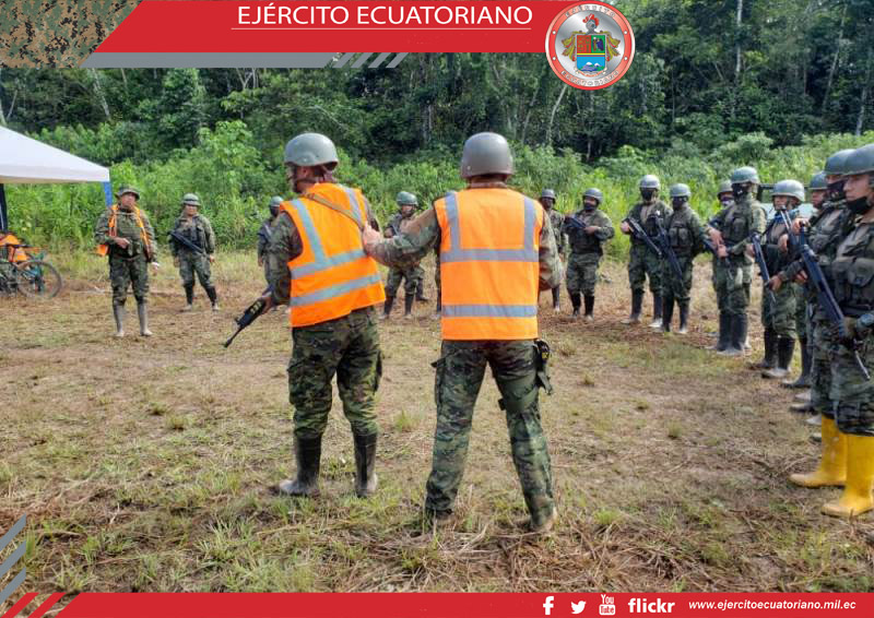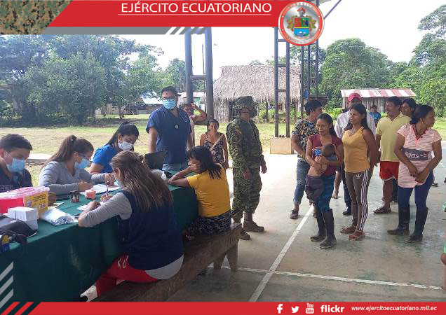 La Brigada de Selva N.⁰ 19 Napo, cumpliendo con todas las medidas de bioseguridad, brinda seguridad y apoyo al Ministerio de Salud Pública durante el proceso del Plan de...