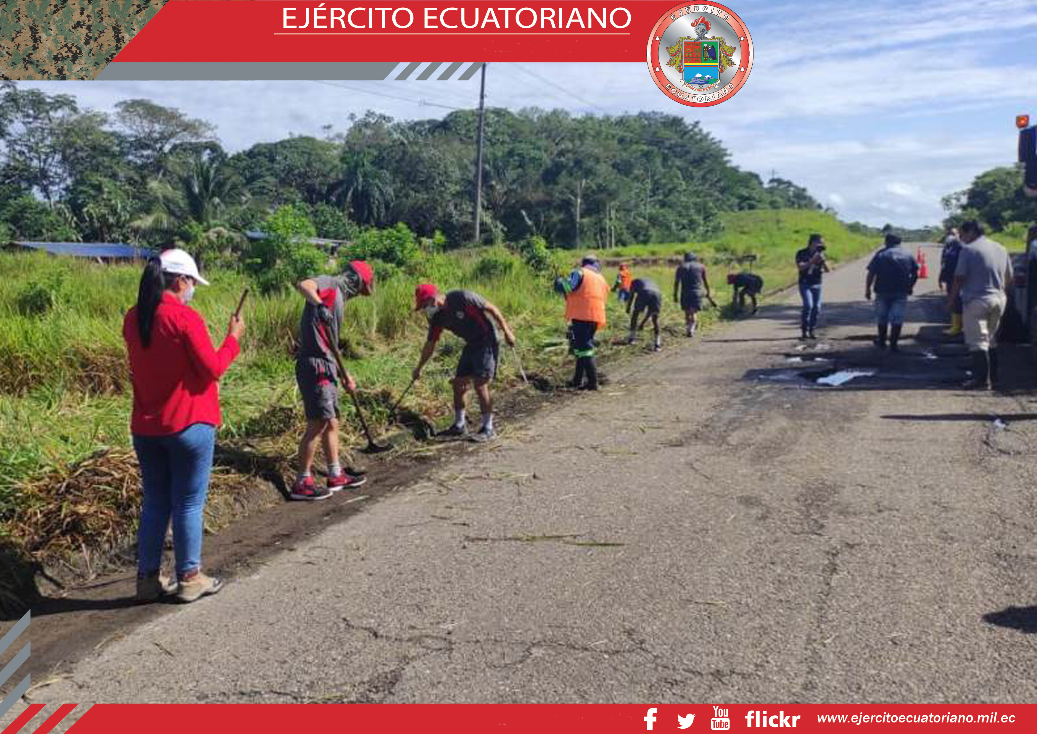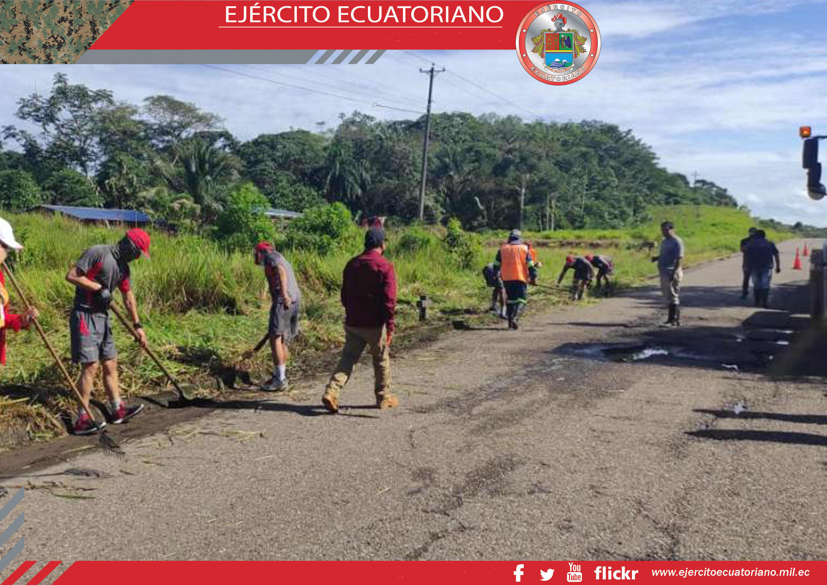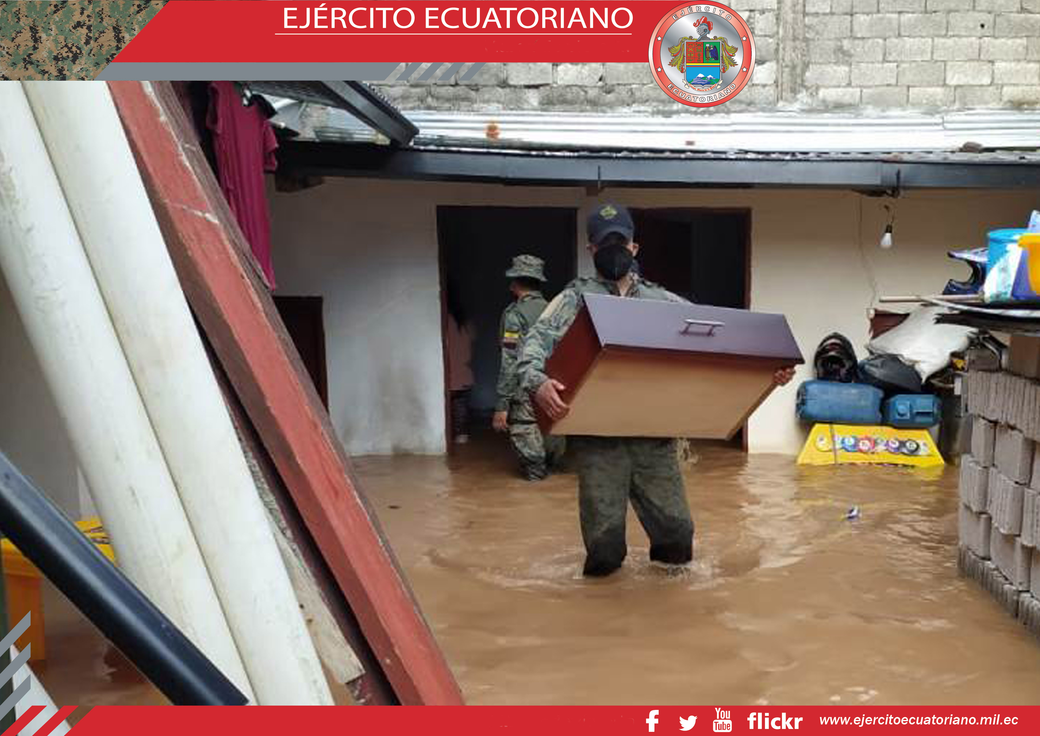 En apoyo al Servicio Nacional de Gestión de Riesgos y Emergencias, personal del Batallón de Selva N.° 56 Tungurahua, ante la emergencia presentada por las inundaciones en la...