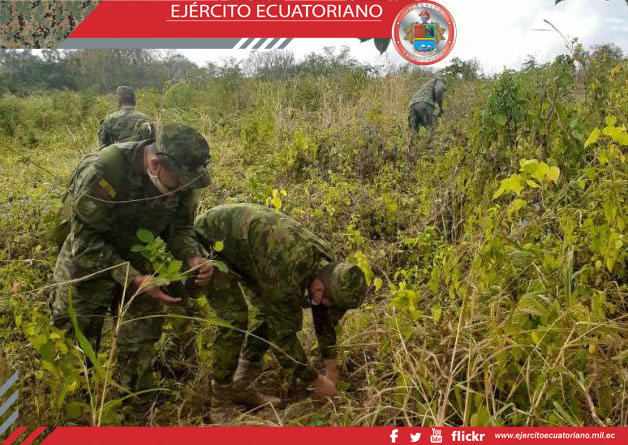 Personal del Batallón de Infantería Motorizada N.º 1 El Oro conjuntamente con representantes del Ministerio del Ambiente participaron en la campaña de forestación en la Reserva...