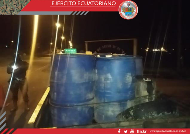 En una operación militar de control de armas, municiones y explosivos realizada en Tiwintza por miembros del Batallón de Selva N. 61 Santiago se decomisó de 240 galones de...