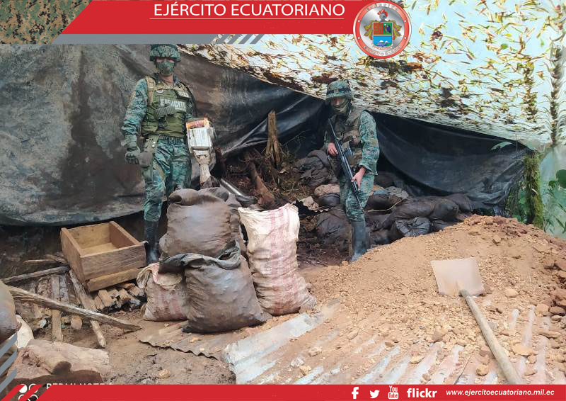 En el sector de la comunidad Pioculín, parroquia Puerto Napo, cantón Tena, efectivos del Batallón de Operaciones Especiales en Selva N.° 47 Iwias encontró a personas realizando...