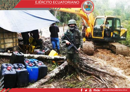 En el cantón Puerto Napo, en el sector de Zapallo, personal de la Brigada de Selva N.° 17 Pastaza, en apoyo a la Agencia de Regulación y Control de Energía y Recursos Naturales...