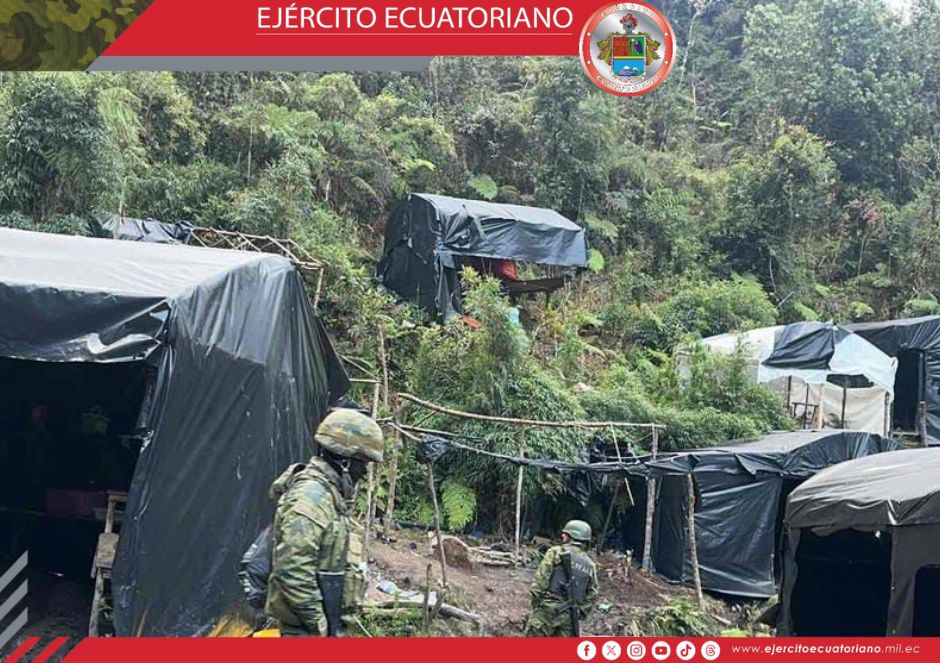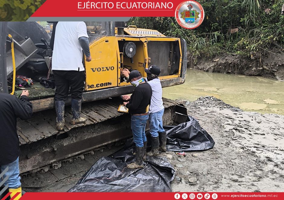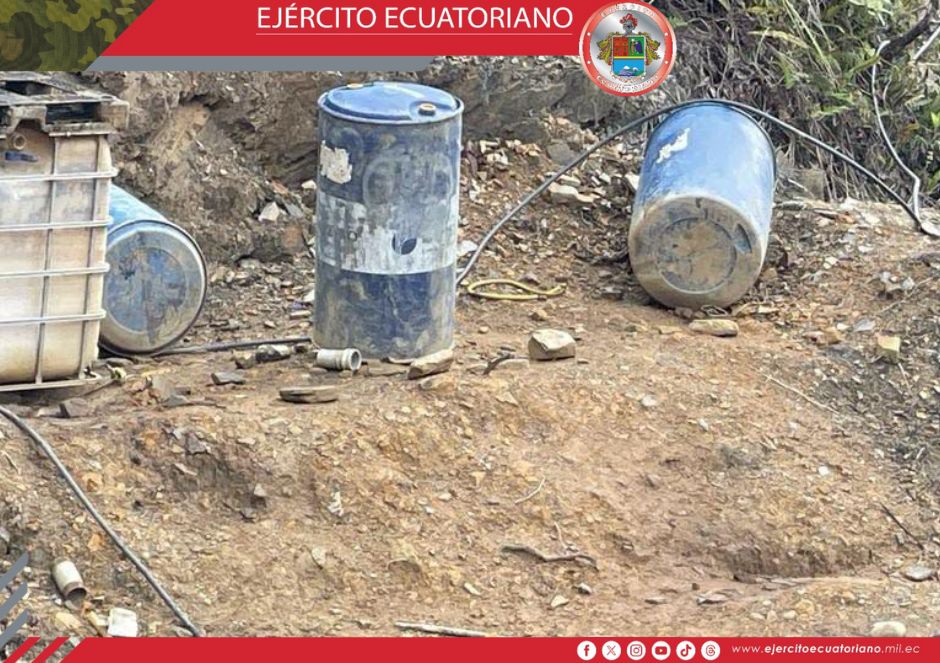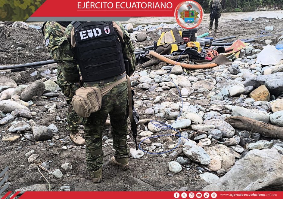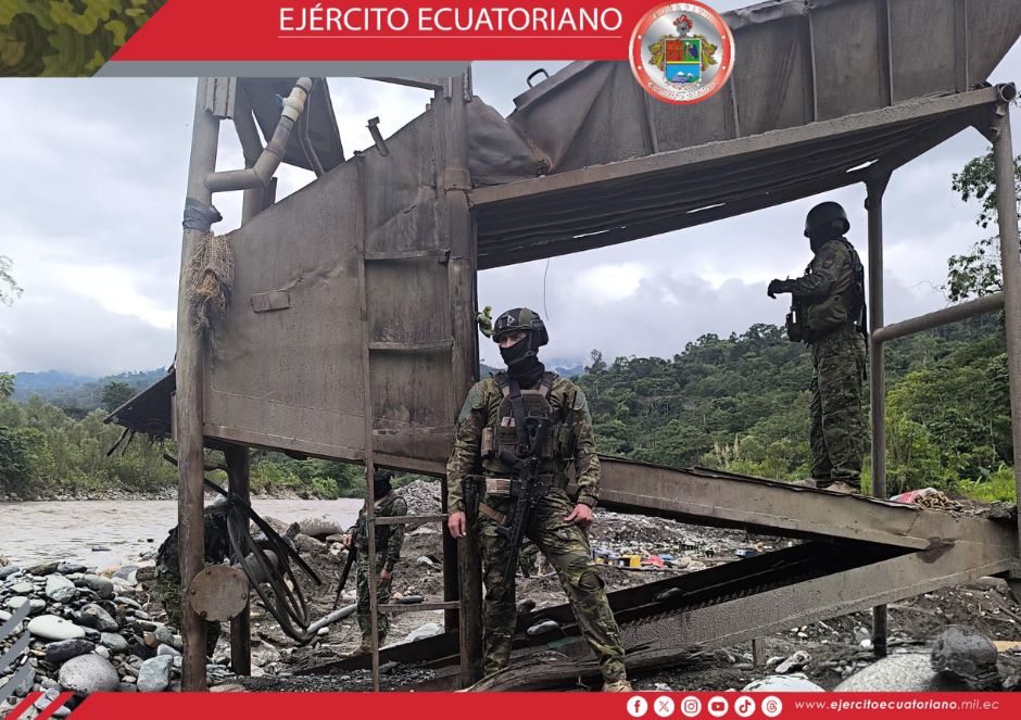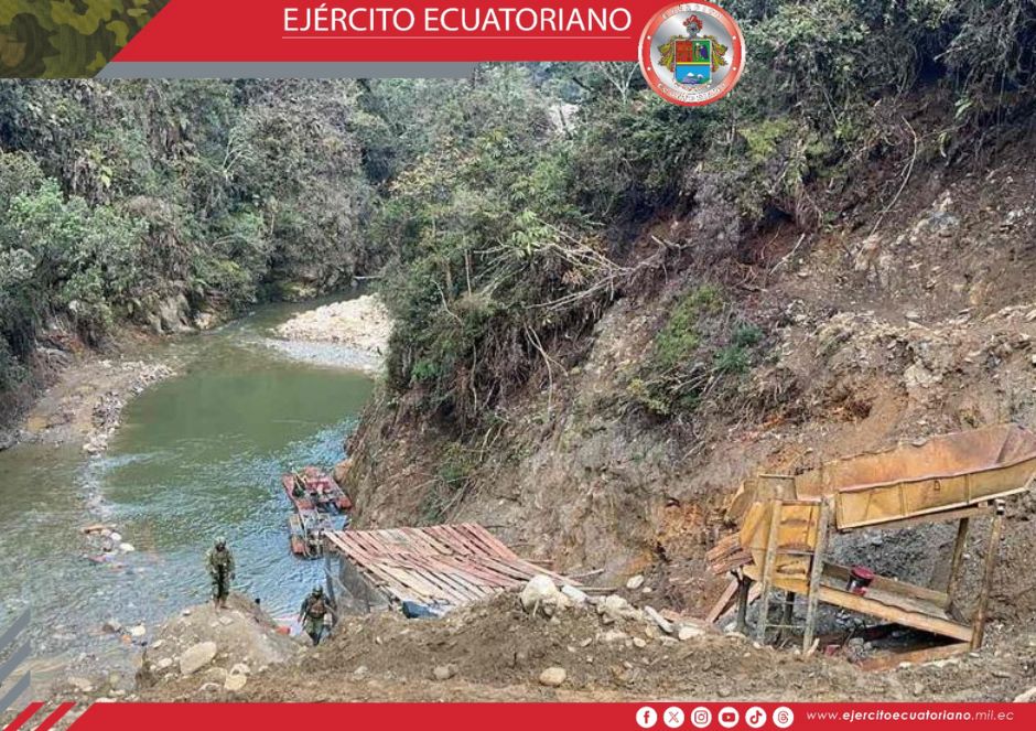 Efectivos del Ejército Ecuatoriano en coordinación con funcionarios de la ARCOM ejecutaron una operación contra la minería ilegal en el cantón Sigsig, sector Gallos, Infiernillos...