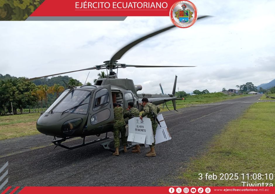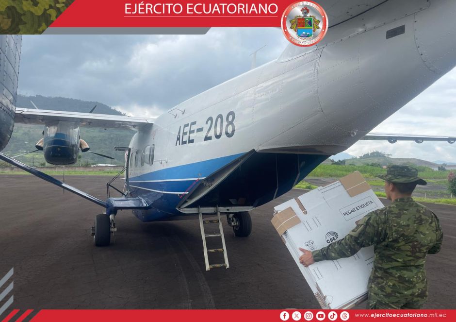El Grupo de Aviación del Ejército N° 44 Pastaza está transportando el material electoral hacia las comunidades de difícil acceso en las provincias de Pastaza y Morona Santiago,...