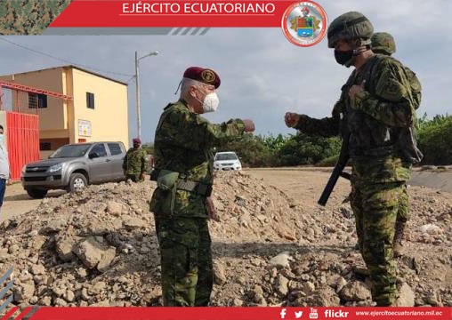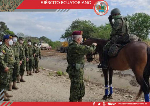 Personal de la Brigada de Infantería Motorizada N.° 1 El Oro, con todas las medidas de bioseguridad, recibió la vista del general de división Luis Lara Jaramillo, jefe del...