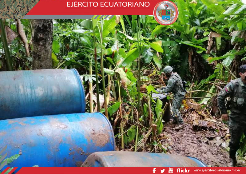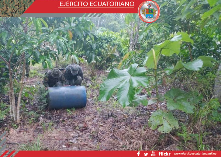 La Brigada de Selva N.° 19 Napo con efectivos del Batallón de Selva N.° 56 Tungurahua encontraron 165 galones de derivados de hidrocarburos que se encontraban ocultos sobre los...