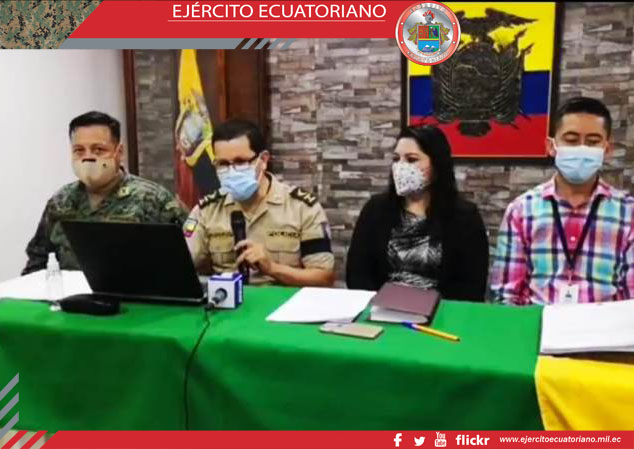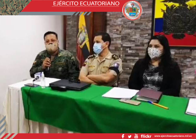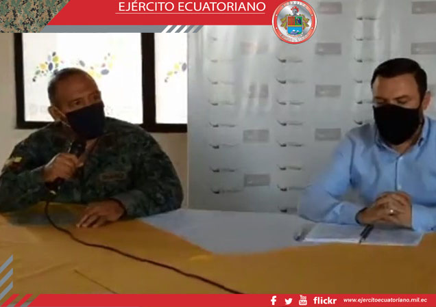 En la Gobernación de la Provincia de Pastaza, durante la rueda de prensa de las entidades del Estado, el teniente coronel Diego Burbano, jefe de Operaciones de la Brigada de...