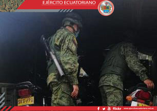 Personal del Grupo de Caballería Mecanizado N.° 36 Yaguachi, durante un patrullaje dispuesto por el escalón superior en el sector de Getsemaní, parroquia de Lita, provincia de...