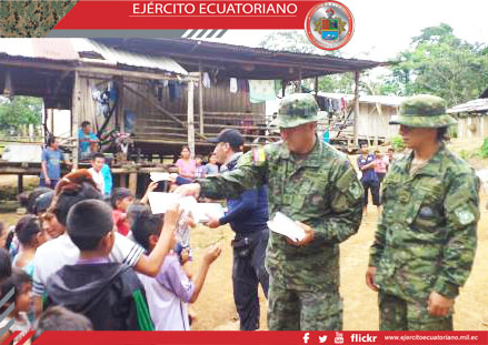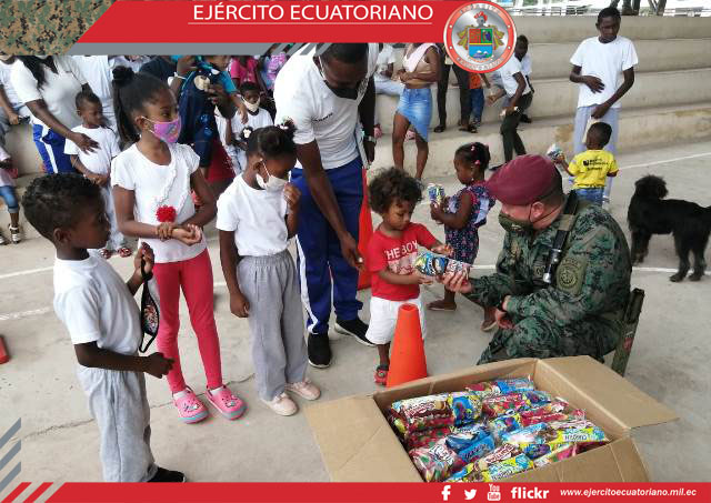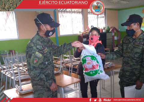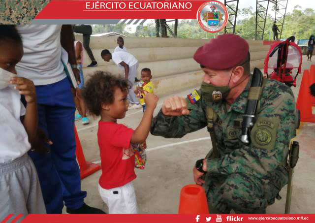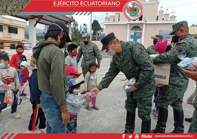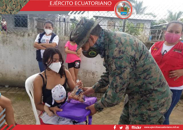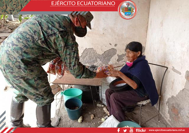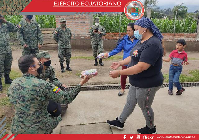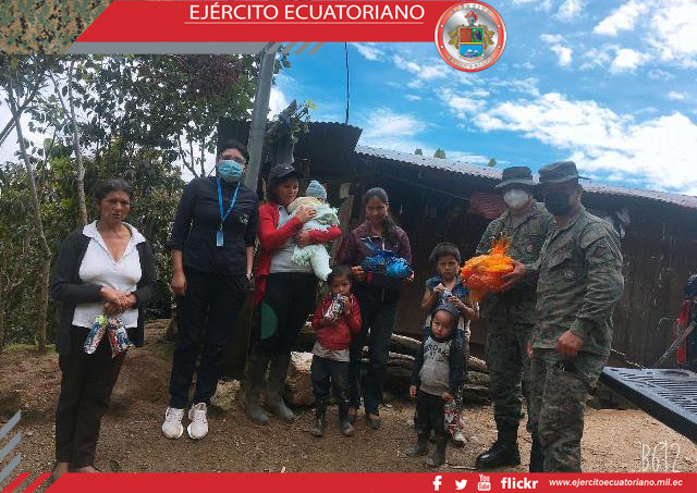Los soldados ecuatorianos, tomando las medidas de bioseguridad, han llegado a varios sectores con alegría a los más necesitados.