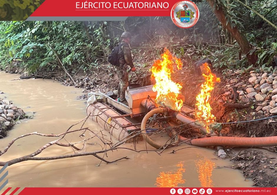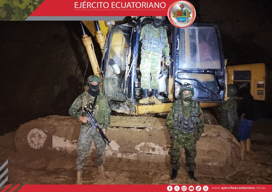 En una operación militar contra la minería ilegal, el Batallón de Infantería Motorizada N.º 3 Pichincha intervino en el sector Río Negro, cantón Pasaje, donde se aprehendió a dos...