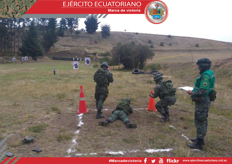 La Escuela Superior Militar Eloy Alfaro, como parte del plan general de enseñanza, realiza la instrucción de tiro en el polígono de la Brigada de Infantería N.° 13 Pichincha con...