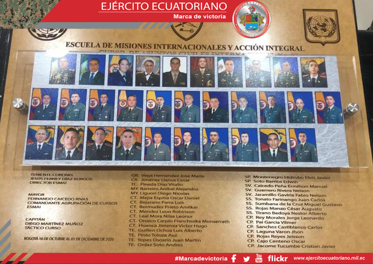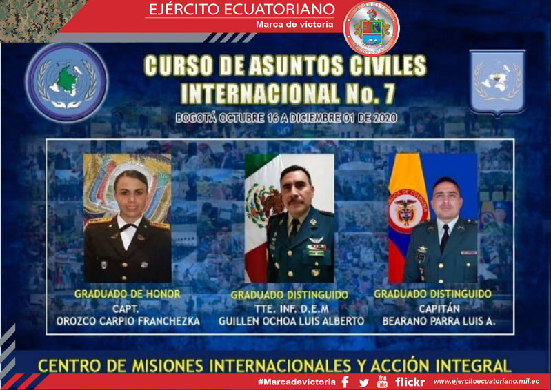 2 oficiales, 3 voluntarios y 1 aerotécnico de las Fuerzas Armadas del Ecuador participaron en el Curso de Asuntos Civiles Internacionales N. º 7 desarrollado por la Escuela de...