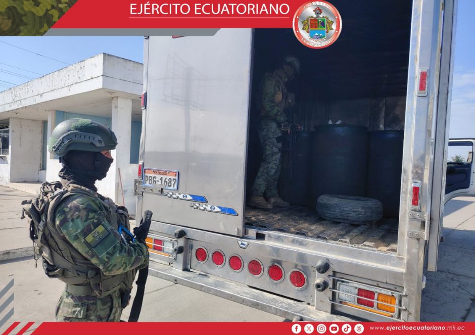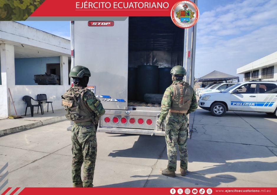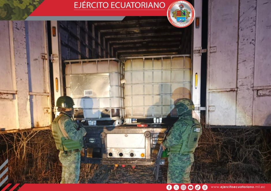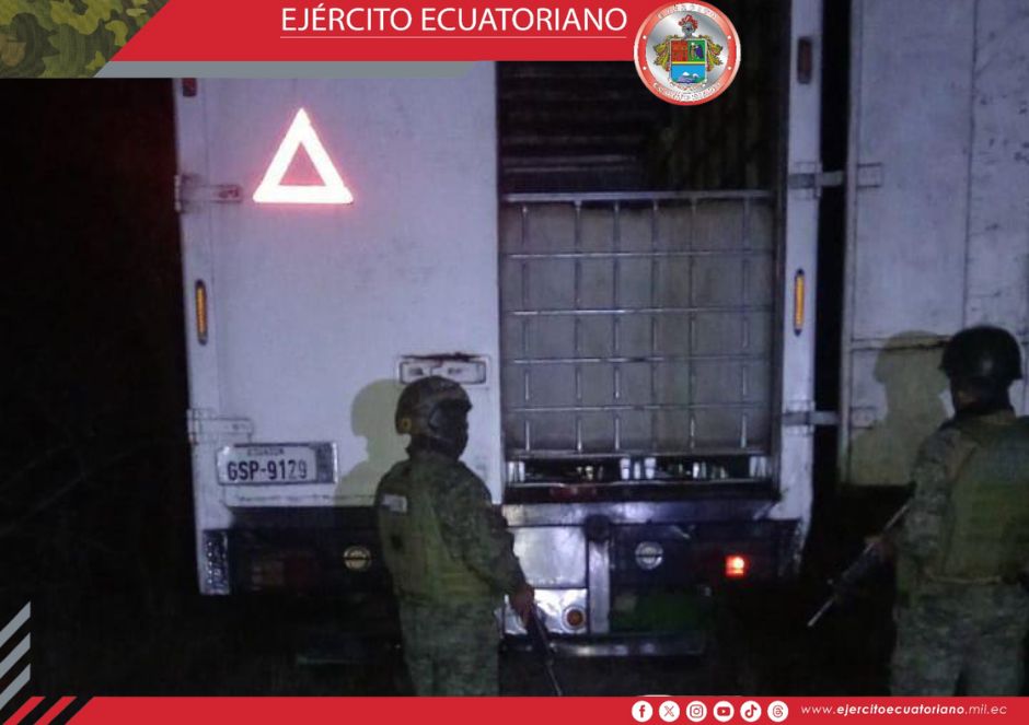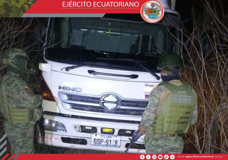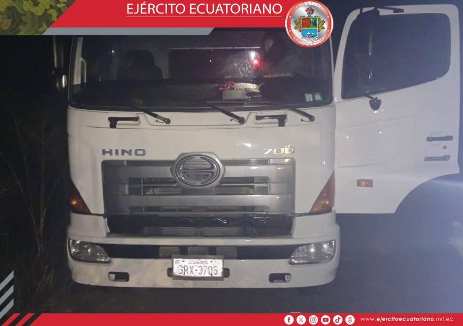 Efectivos del Ejército Ecuatoriano, durante la ejecución de operaciones militares de control y vigilancia en el cantón Arenillas, parroquia Chacras, decomisaron un camión que...