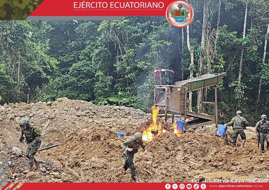 La Brigada de Selva N.° 17 Pastaza, en apoyo a otras instituciones del Estado, realizó una operación militar de ámbito interno contra la minería ilegal en el cantón Tena, sector...