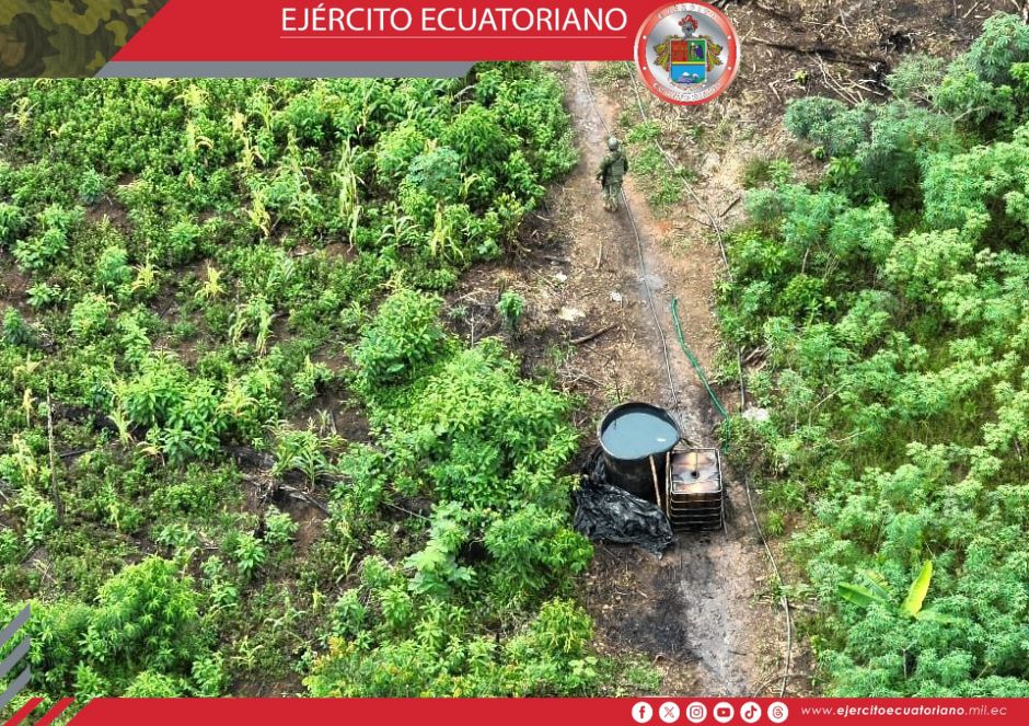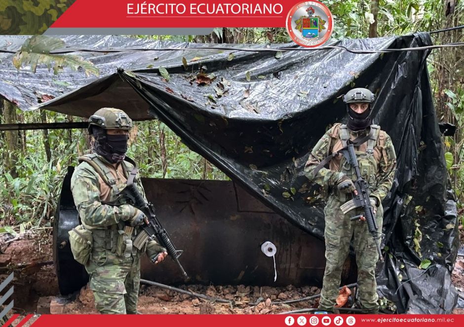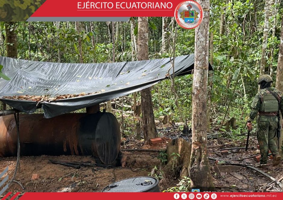 La Brigada de Selva N.º 19 Napo descubrió una refinería clandestina de crudo en el sector Chone 1, cantón Lago Agrio, cerca de la Reserva Ecológica Cuyabeno. Durante una...