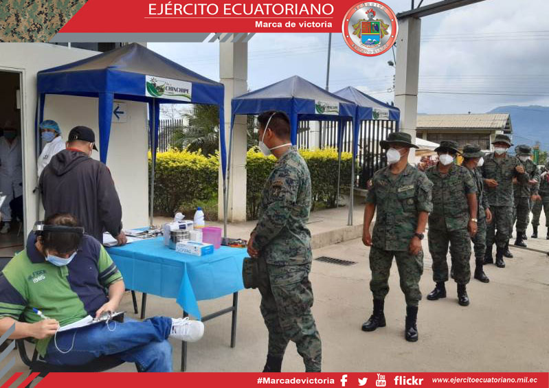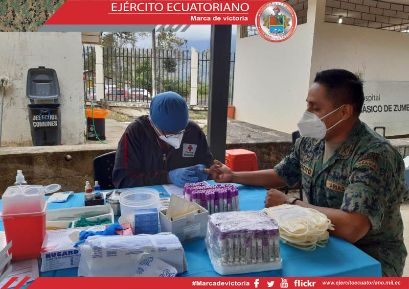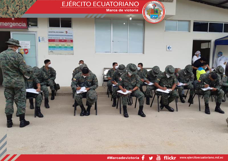 Personal militar del Batallón de Selva N.º 17 Zumba, en coordinación con el Hospital Básico del cantón Zumba y en apoyo a la Cruz Roja Ecuatoriana, participan en la campaña de...