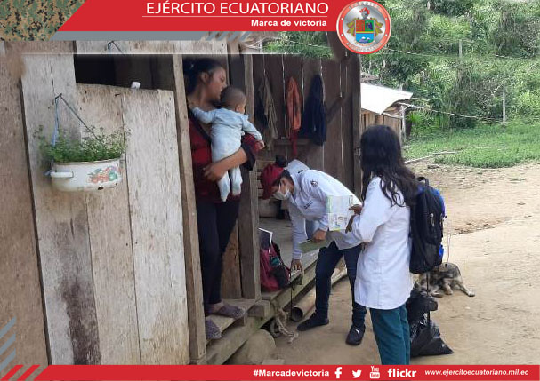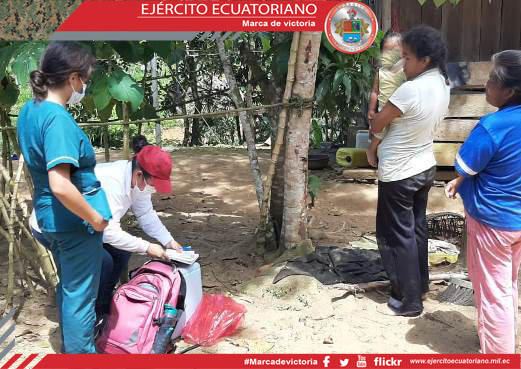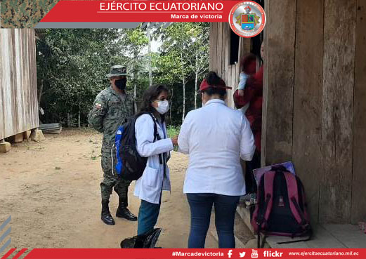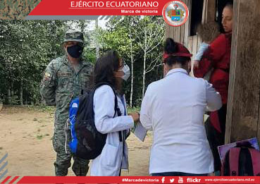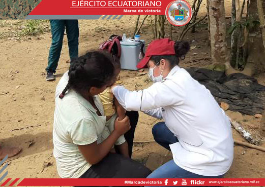 Personal de la Brigada de Selva N.° 21 Cóndor en apoyo al Ministerio de Salud Pública participó en la campaña de vacunación en la comunidad de Chuint, en Morona Santiago, con el...