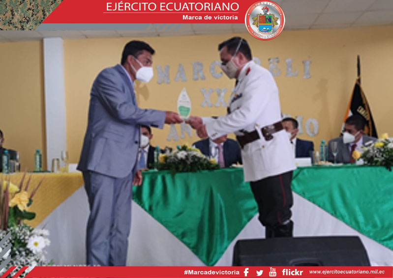 El estandarte del Grupo de Caballería Blindada N.º 4 Febres Cordero, recibió la Mención de Honor, otorgada por el Gobierno Autónomo Descentralizado del cantón Marcabelí, en...