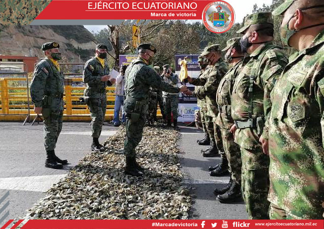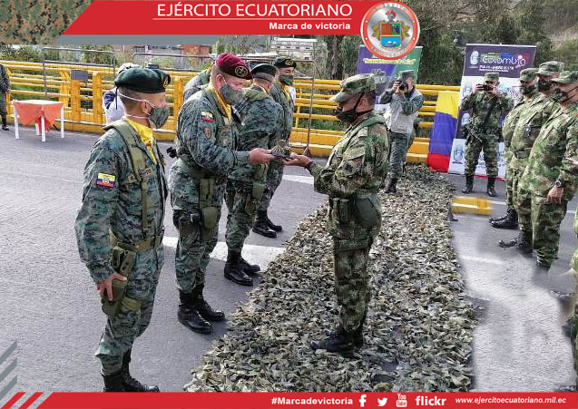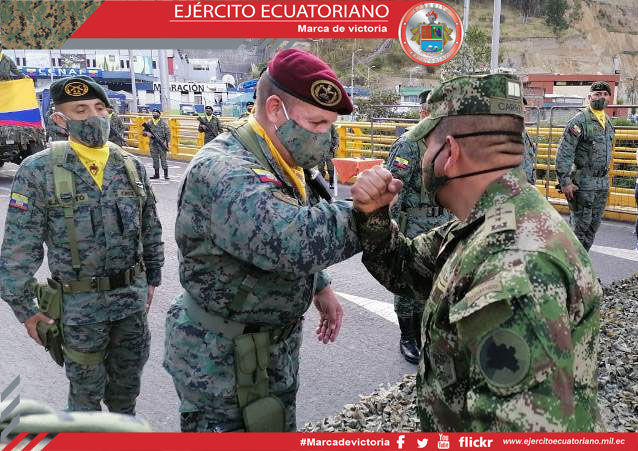 En el Puente Internacional de Rumichaca se llevó a cabo el saludo protocolar entre el coronel Pablo Merino Suárez, comandante de la Brigada de Infantería N.° 31 Andes y su...