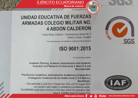 La Unidad Educativa de Fuerzas Armadas Colegio Militar N.° 4 Abdón Calderón, de la ciudad de Cuenca, luego de haber cumplido con las fases remotas 1 y 2 de la auditoría de...