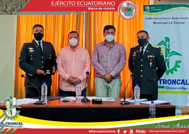 El Gobierno Autónomo Descentralizado de La Troncal entregó la condecoración al Mérito Profesional al Estandarte del Grupo de Artillería Lanzadores Múltiples N.° 80 Calderón por...