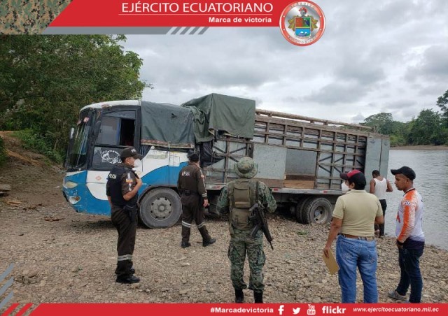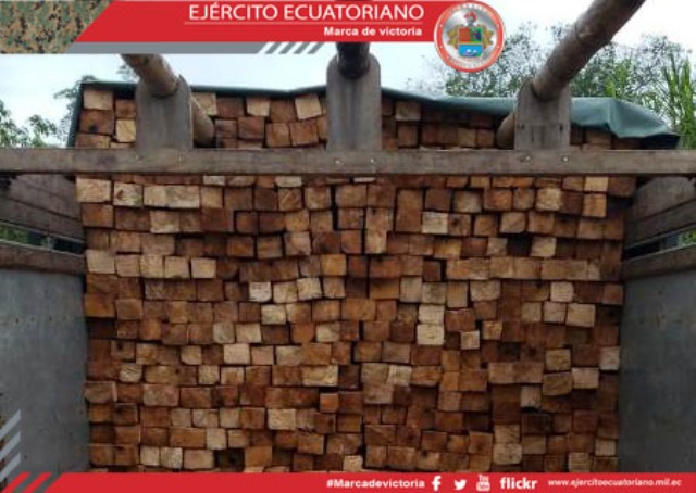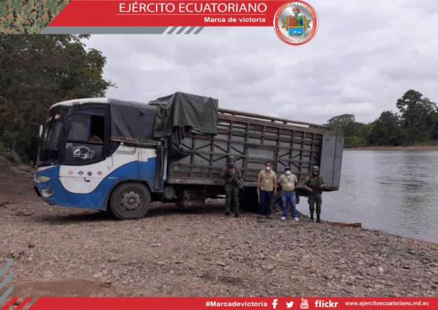 Personal del Batallón de Selva N.° 56 Tungurahua mientras efectuaban operaciones militares de reconocimiento y vigilancia, detuvo a un camión Chevrolet cargado de madera tipo...