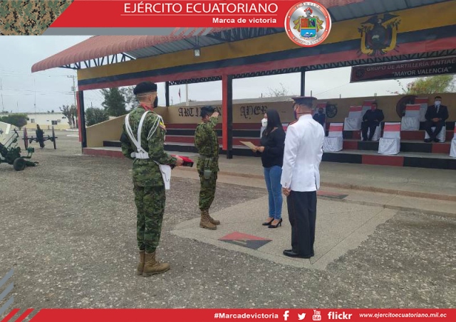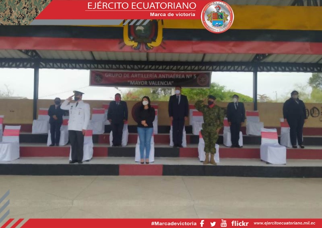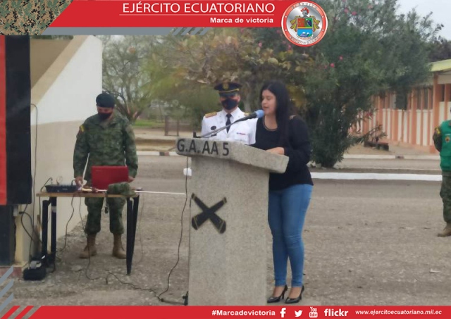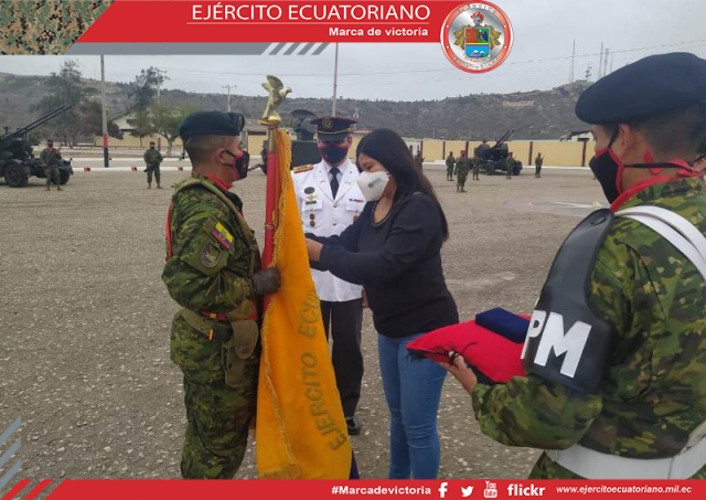 La señora Datzania Villao Burgos, gobernadora de Santa Elena, en ceremonia militar hizo la entrega y colocación de una mención de honor al Estandarte nacional del Grupo de...
