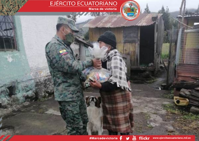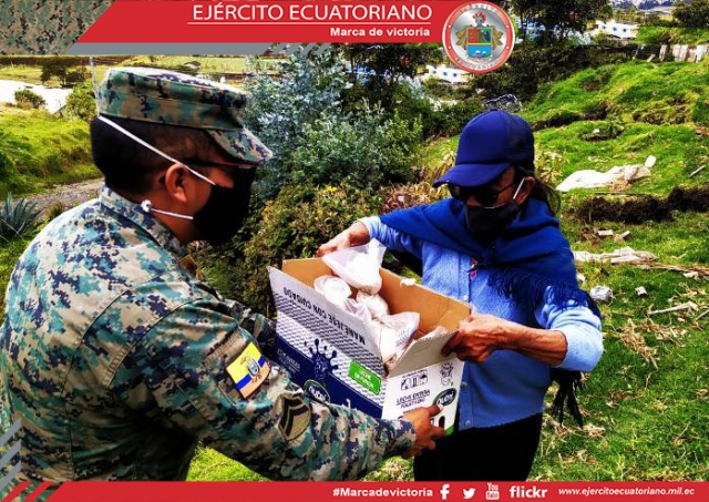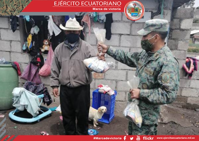 Personal de la Brigada de Infantería N.° 13 Pichincha se desplegó este viernes 21 de agosto en los cantones Mejía y Quito para llevar alimentos de primera necesidad a la...