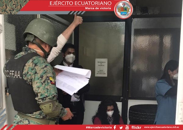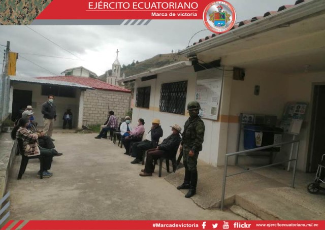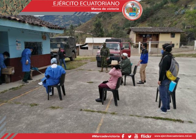 En la provincia del Azuay, militares del Grupo de Artillería Autoremolcado N.° 79 General Pintag, en apoyo al plan de requisición del Ministerio de Salud Pública de la Zona 6,...